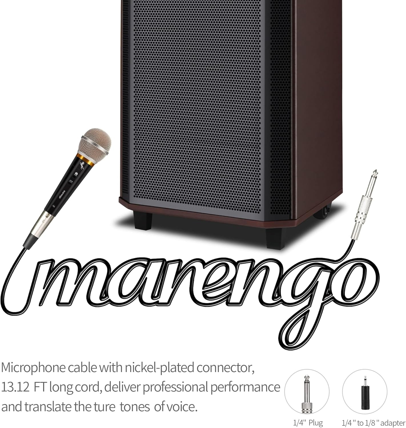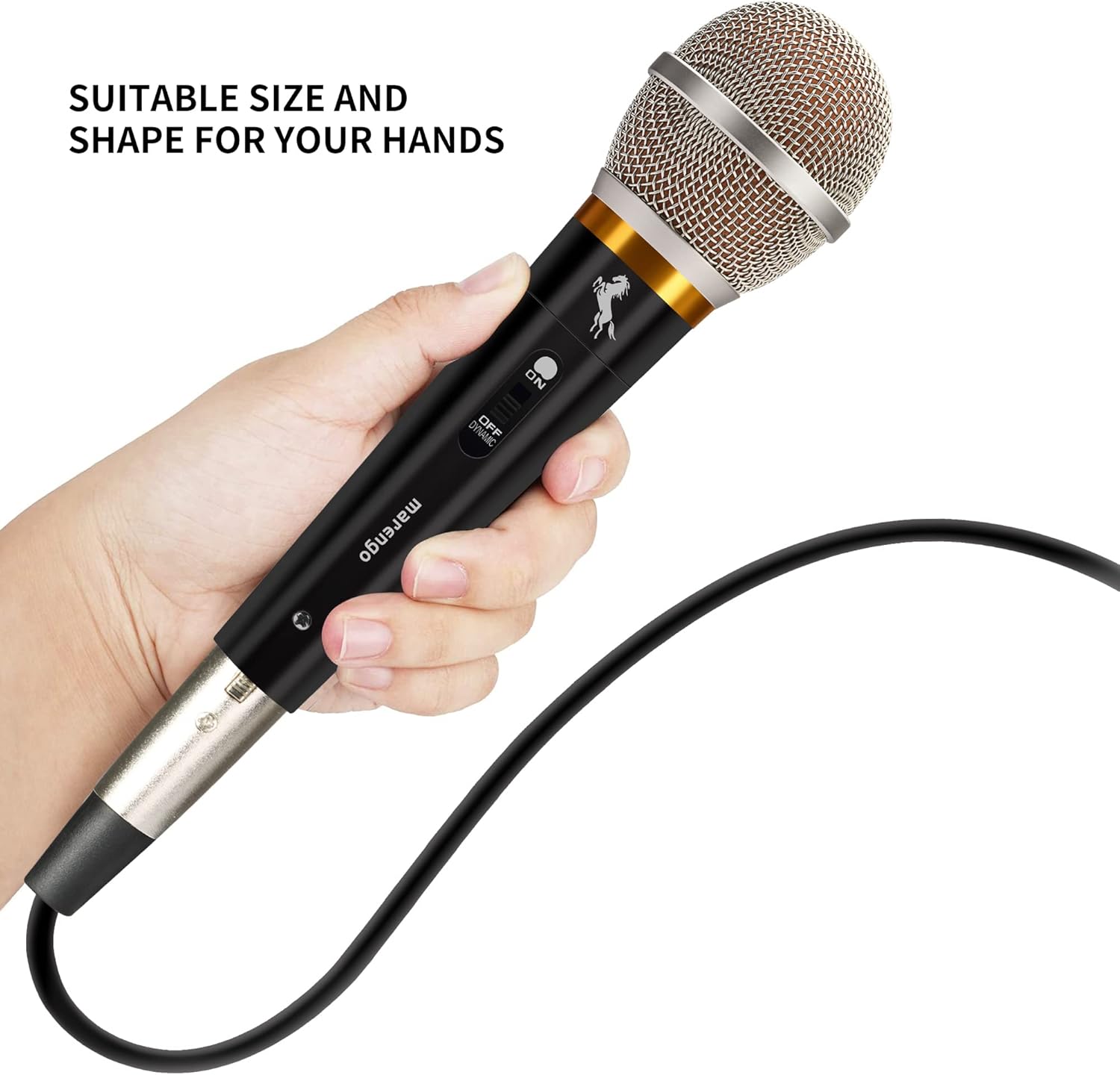 Introducing the Marengo Handheld Dynamic Microphone, your ultimate companion for karaoke singing and live performances! This professional wired XLR microphone features a convenient On and Off switch, allowing you to control your sound with ease. The microphone comes with a 13ft detachable XLR cable, providing you with the freedom to move around and engage your audience.